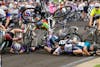 Little 500 riders crash into each other during the 2025 women's Little 500 on April 25, 2025, at Bill Armstrong Stadium in Bloomington. The crash took place in the fourth lap.