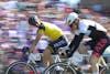 An Alpha Kappa Psi racer looks back at another cyclist during the men's Little 500 race April 26, 2025, at Bill Armstrong Stadium in Bloomington. This was the ninth time Alpha Kappa Psi competed in the race.