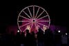 A ferris wheel is lit up at the Late Nite Cream and Crimson Carnival on April 11, 2025, at Showalter Fountain in Bloomington. The lines for some rides wrapped around the fountain and filled the area.