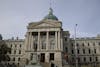 The Indiana Statehouse is seen Feb. 10, 2024, in Indianapolis. Indiana’s immigration enforcement bill cleared the Indiana House of Representatives on Thursday.