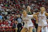 Freshman forward Maya Makalusky boxes out a Northwestern player Feb. 1, 2026, at Simon Skjodt Assembly Hall in Bloomington. The Hoosiers fell to USC 79-73 on Thursday.