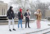 The contestants of the Fernando Mendoza Lookalike contest are pictured Dec. 13, 2025, at Showalter Fountain in Bloomington. Three contestants participated in challenges to see who is most like Indiana football quarterback Fernando Mendoza.