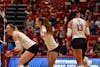 Senior middle blocker Madi Sell, freshman outside hitter Jaidyn Jager and senior opposite hitter Avry Tatum prepare for a rally against the University of Colorado Boulder on Dec. 5, 2025, at Wilkinson Hall in Bloomington. The Hoosiers fell to the University of Texas at Austin on Friday in the NCAA Tournament regional semifinals.