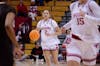 Freshman guard Nevaeh Caffey dribbles in a game against Western Michigan University on Dec. 3, 2025, inside Simon Skjodt Assembly Hall in Bloomington. Caffey scored a career-high 16 points in the Hoosiers' win over Wisconsin on Wednesday.