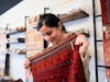 Nargis Orokzai holds a rug at Kabul Corner on Feb. 5, 2026, at 305 E. Third St. in Bloomington. Orokzai opened the cafe in December 2025.