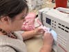 IU student Audrey Poynter uses a sewing machine Feb 1, 2026, as she works on an outfit for the Trashion Refashion Runway Show in Kirkwood Hall in Bloomington. The design was inspired by 18th century fashion.