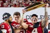 Senior linebacker Aiden Fisher holds the College Football Playoff National Championship trophy Jan. 19, 2026, at Hard Rock Stadium in Miami Gardens, Florida. Fisher led the Hoosiers to their first-ever national championship in his final season at Indiana.