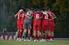 Indiana men's soccer players huddle together during their contest against the University of Wisconsin-Green Bay on Aug. 28, 2025, at Bill Armstrong Stadium in Bloomington. The Hoosiers signed five freshmen on Thursday.