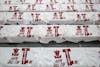 T-shirts are laid out for fans before the game against Oregon on Feb. 9, 2026, at Simon Skjodt Assembly Hall in Bloomington. The shirts commemorated the 50th anniversary of Indiana's undefeated 1975-76 basketball season.