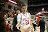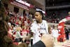 Freshman guard Drew Snively high-fives Hoosier fans as they celebrate their win over Penn State on Dec. 9, 2025, at Simon Skjodt Assembly Hall in Bloomington. Indiana scored their most points in a game this season.