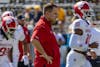 Indiana football head coach Curt Cignetti stands with his arms crossed on the sideline as players gather behind him before running out onto the field to face Purdue on Nov. 28, 2025, at Ross-Ade Stadium in West Lafayette, Indiana. Eight former zero-star recruits started for the Hoosiers in the Big Ten Championship game Saturday.