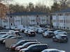 Police cars, both marked and unmarked, are stationed Dec. 8, 2025, in the parking lot of the Maxwell Terrace Apartment complex in Bloomington. The FBI made four arrests in connection to the raid at the Bloomington apartment complex.
