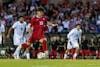 Senior forward Palmer Ault strikes the ball during a match against Oregon State University on Aug. 31, 2025, at Bill Armstrong Stadium in Bloomington. Ault was named a MAC Hermann Trophy semifinalist Tuesday.