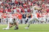 Redshirt sophomore kicker Nico Radicic kicks the ball during the Big Ten Championship game against Ohio State on Dec. 6, 2025, at Lucas Oil Stadium in Indianapolis. Radicic made two field goals in the game.