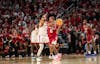 Fifth-year senior guard Lamar Wilkerson looks to pass in a game against the University of Louisville on Dec. 6, 2025, at Gainbridge Fieldhouse in Indianapolis. Wilkerson scored 12 points in the Hoosiers' loss.