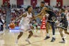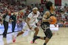 Sophomore forward Zania Socka-Nguemen looks to pass the ball in a game against Butler University on Nov. 19, 2025, inside Simon Skjodt Assembly Hall in Bloomington. Socka-Nguemen has missed the Hoosiers' past two games.