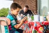 Jude Vanderberg, 8, decorates a ceramic cat outside The Pottery House Studio on Sept. 4, 2021, in Bloomington. Classes for all ages are offered at the studio.