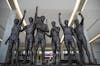 Members of the 1976 Indiana men's basketball team, which remains the last team to finish the year as undefeated national champions, are shown receiving their plaques for the NCAA title. Indiana Athletics announced that the team will be honored during the Hoosiers' matchup with Oregon on Feb. 9.