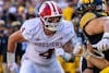 Senior linebacker Aiden Fisher walks off the field after Indiana football's Senior Day contest against Wisconsin on Nov. 15, 2025, at Memorial Stadium in Bloomington. Fisher never lost a game at Memorial Stadium.