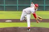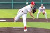 Graduate student right-handed pitcher Michael Sarhatt throws the ball during the game against Wright State University on March 10, 2026, at Bart Kaufman Field in Bloomington. Sarhatt pitched for 1.2 innings.