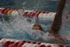 Indiana sophomore Raekwon Noel backstrokes during the meet against the University of Louisville on Jan. 30, 2026, at the Counsilman-Billingsley Aquatic Center in Bloomington. Noel placed first in the men's 100-yard butterfly.