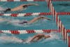 An Indiana women's swimmer competes against the University of Louisville in the 200-meter butterfly Jan. 30, 2026, at the Counsilman-Billingsley Aquatic Center in Bloomington. Indiana took the top four of seven places in the women's 200-meter butterfly.