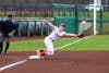 Sophomore first baseman Josie Bird reaches to catch the ball thrown by her catcher during the game against Loyola Chicago on March 10, 2026, at Andy Mohr Field in Bloomington. Bird made the out at first base off of a third strike.