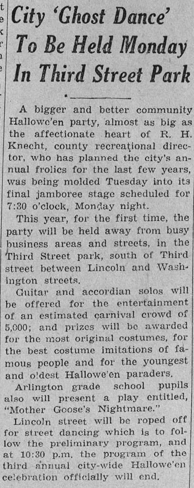 Oct. 38, 1938: "A bigger and better community Halloween party was being molded Tuesday into its final jamboree stage scheduled for 7:30 o'clock, Monday night."