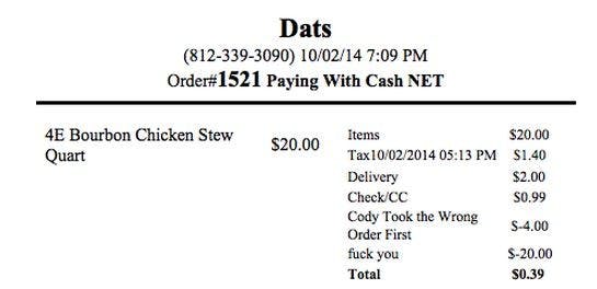 Jessica Montgomery simply wanted a quart of bourbon chicken stew. When the order was mixed up, she expected a refund.