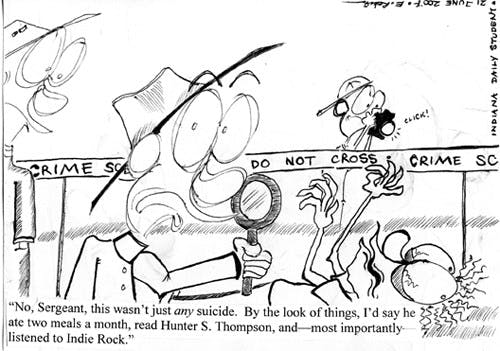 Fledgling rock band Kapow! is getting its name known around Bloomington by leaving it where people can see. Sketches of its comic-like logo explode on multicolored CD envelopes all over town. Free demos sit in front of the register at Soma and on the counter at Dharma Emporium on Kirkwood. Local merchants don't know where they came from. "If they came in and left those CDs, I didn't see them," says a Dharma Emporium employee.