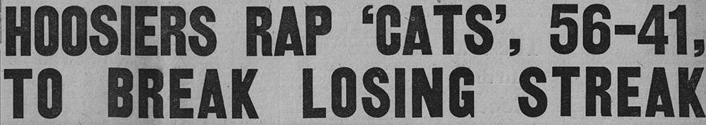 Feb. 15, 1949: Indiana broke its four-game losing streak last night by a 56-41 count at the expense of a weak and ragged Northwestern team which never made a serious threat.